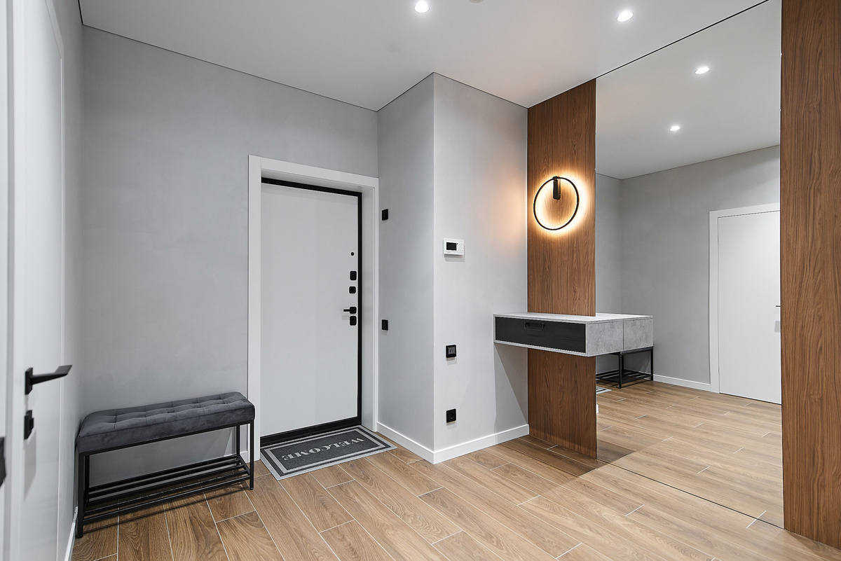 Как за короткий срок оформить мебелью и деталями интерьера 3 "двушки", с ограниченным бюджетом? Когда перед нами поставили такую задачу, мы знали: нужно найти баланс между качеством и стоимостью. Клиент уже работал с нами раньше - мы оформляли его дом с размахом. Но здесь требовался другой подход - премиальная эстетика при строгом лимите средств. Мы предложили такие материалы и решения, которые позволили выполнить эту задачу. Посмотрите, что у нас получилось, и попробуйте угадать средний бюджет на квартиру – ответ в конце статьи. Встречает большим зеркалом и светильником - так пространство сразу кажется просторнее. Удобная тумбочка для личных вещей и просторная гардеробная, где можно оставить чемоданы и верхнюю одежду. Выделяется аккуратностью: тумба под умывальником с выдвижными ящиками для косметики, шкаф со стиральной и сушильной машинами, а ещё — стеллаж для полотенец со встроенной бельевой корзиной. Все сантехнические соединения скрыты, чтобы ничего не нарушало чистый вид. Собран