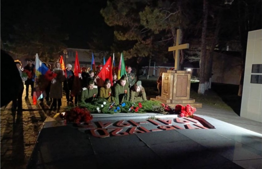 Торжественное мероприятие началось в 5:00 на мемориале «Стела», где состоялось возложение цветов и гирлянды Славы. В акции приняли участие представители организаций и учреждений станицы, ветераны боевых действий, депутаты, юнармейцы и волонтеры культуры.