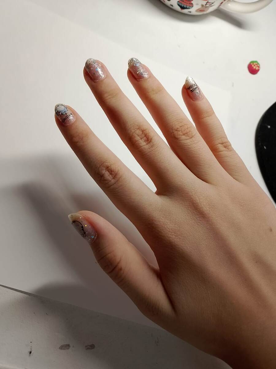 Всем привет! Уже недели 2 я отращиваю ногти. Для того, чтобы я сделала себе маникюр. И вот позавчера я себе его сделала! Маникюр (от лат. manus — кисть и cura — уход) — косметическая процедура по обработке ногтей на пальцах рук и самих кистей рук (реже — всей руки) человека. Я просто подпилила ногти и покрыла лаком с блестками и наклеила специальные наклейки с котиками! Сейчас покажу как они выглядят. Наклейки я заказывала в сима-лэнде! Еще дома у меня есть наклейки с бабочками. Мне нравится заниматься дизайном ногтей. У моей мамы очень много разных гель-лаков, профессиональная лампа для сушки ногтей и много другого. Скоро буду осваивать взрослый маникюр! Всем до встречи и пока!