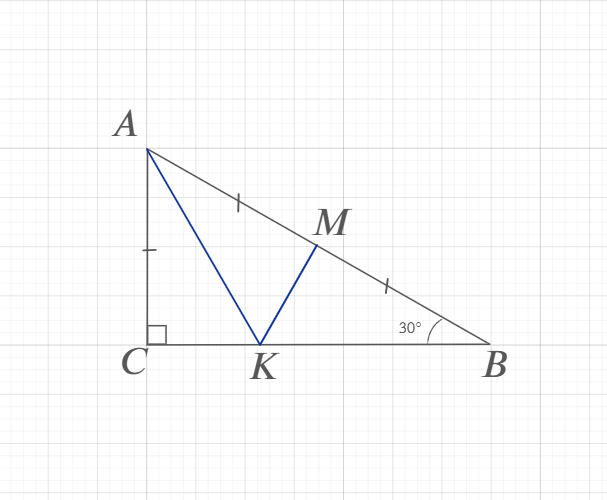 36. ★★☆ Точка M - середина гипотенузы AB прямоугольного треугольника ABC. На его катете BC выбирают такую точку K, что AK+KM=BC. Докажите, что если угол ABC=30°, то угол KMB=90° ...