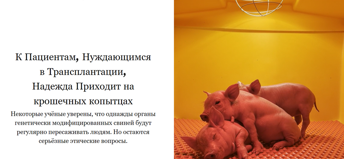 Эти миниатюрные свинки — часть смелого научного эксперимента, в котором используются достижения в области клонирования и редактирования генов, чтобы осуществить многовековую мечту о ксенотрансплантации — пересадке почек, сердец, печени и других органов животных людям, которым они нужны.