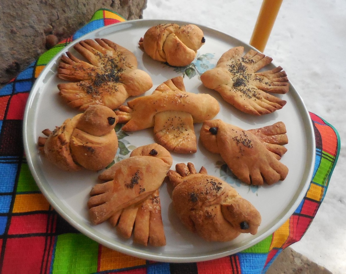 Закончилась зима, весна всё чаще радует нас солнечной и тёплой погодой. Миновали и дни весеннего равноденствия - 22 марта был день, когда на Руси согласно народному календарю славян праздновали Сорок СорокОв или Жаворонки. Я описывала этот праздник ранее: https://dzen.ru/b/ZBpfpVPfKi7kcF9X В этом году тоже пекла жаворонков, как принято это было в моём детстве, и кликала весну, выйдя на крыльцо с испечёнными жаворонками в руках: А накануне 20 марта у нас опять вылупились перепелята, готовим замену тем перепелочкам, которые скоро состарятся - да, короток век у перепелов (( Продолжает работать моя уличная кормушка для птиц. В эту зиму прилетает много снегирей - на них особенно приятно смотреть! Вот сейчас сижу за компьютером и подглядываю за птичками, отодвинув шторку: А недавно к нам начали прилетать очень красивые птички с серой спинкой и зелёным брюшком. Я долго искала, как её зовут и нашла! Это зеленушка: Долго пыталась её сфотографировать... удалось сделать только несколько не очень