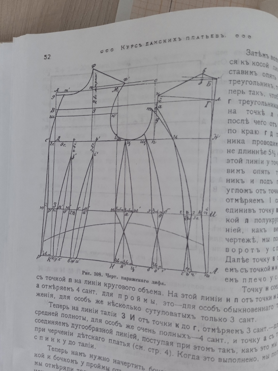 Ну что? Только потрогали ножкой водичку и сразу в омут с головой! Стоило взяться за какую-нибудь английскую кофточку, сорочку или на худой конец юбку. Но в простом у меня не было особой нужды, а вот сложное мне требовалось. Пора было браться за платье к балу по модерну. Поэтому, пока новогодние каникулы, свежая голова и есть свободное время, можно браться и за сложную работу. На психах в цейтноте простое сделать можно. Сложно, но можно. Сложное -- вообще нет. Итак, открываем страницу. Снятие мерок отличается от современного довольно существенно тем, что тут мерки снимаются не на голое тело и даже не на современный комплект белья, а на корсет и прочую амуницию. А это сорочка, корсет, нижняя юбка и, если она есть, подушечка на бёдрах. Иначе платье не сядет и не сделает историчный силуэт. Ещё есть проверочные мерки. Особо упоротые, но я ими что-то не воспользовалась. Здесь, надо заметить, написано всё довольно чётко. Нужно следовать инструкции, описанной в книге. И только. Вопрос воз