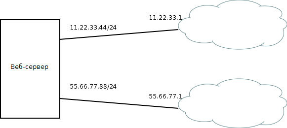 провайдеров, необходимо обеспечить доступность сервера с обоих каналов:
