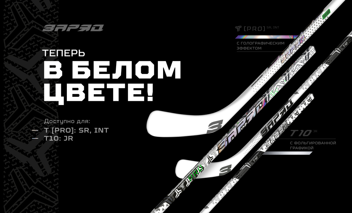 Рассказываем про новинку российских клюшек «ЗаряД» и где её можно будет купить. Один из главных трендов хоккейной экипировки в этом сезоне – белая клюшка. Многие хоккеисты КХЛ выбирают именно этот цвет, который эффектно смотрится во время игры. В компании «ЗаряД» решили не отставать от модных тенденций и выпустить клюшки в белом цвете. Клюшки «ЗаряД» в белом цвете в продаже на две модели ассортимента – [Т PRO] (SR и INT) и «T10» (JR). [Т PRO] – клюшка, спроектированная специально для профессиональных хоккеистов. Это идеальный баланс, высокая прочность и лаконичный обновлённый дизайн с фольгированной графикой. Белая графика на [Т PRO] обладает голографическим эффектом. Доступны взрослые и подростковые модели. Жёсткость – 60, 75, 85, 100, 110 флекс. Загибы – «З-10», «З-17», «З-25», «З-82», «З-10М», «З-17М», «З-71» и «З-90». «Т10» – топовая модель, разработанная для профессионалов. Обновлённая серия «Т» предлагает игрокам невероятное сочетание характеристик, которые помогут достичь нового