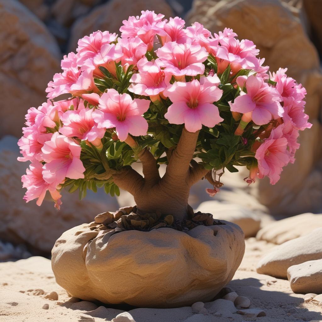 - Экстремалы пустыни: в природе Адениумы часто растут прямо на голых камнях, цепляясь корнями за трещины.