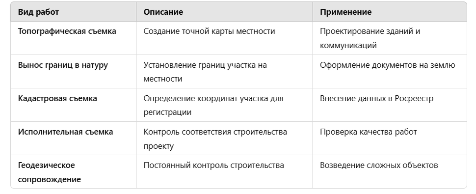 3️⃣ Вид работ – Например, стоимость топосъемки отличается от цены на вынос границ.