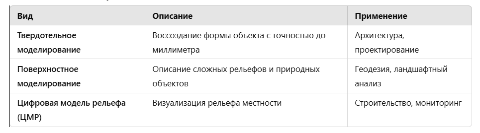 1️⃣ Лазерное сканирование (LiDAR) – обеспечивает высокую точность при моделировании сложных объектов.