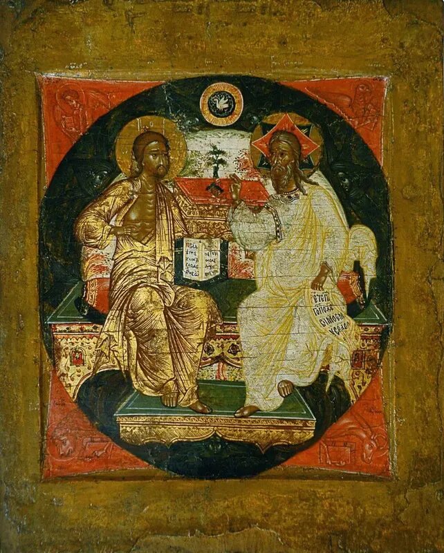 Сомневающийся: Но ведь Стоглавый собор запретили изображать Божество? Вот что написано: «Да и о том святителем великое попечение и брожение имети комуждо во своей области, чтобы гораздые иконники и их ученики писали с древних образцов, а от самосмышления бы своими догадками Божества не описывали. Христос бо Бог наш описан плотию, а Божеством не описан. Якоже рече святый Иван Дамаскин: «Не описуйте Божества, не лжите слепии. Просто бо невидимо и незрительно есть»»[1].