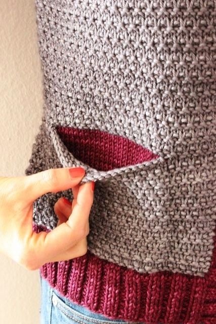 Вязание прорезного кармана, описание, фото.