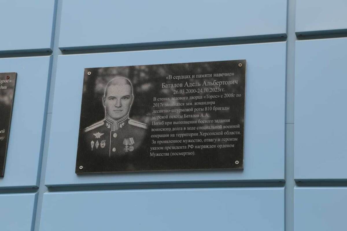 Увековечить память Аделя Баталова предложили родители воспитанников ДЮСШ «Торос». Руководство клуба поддержало их инициативу. Открытие мемориальной доски состоялось 26 марта – в этот день воину могло бы исполниться 25 лет.