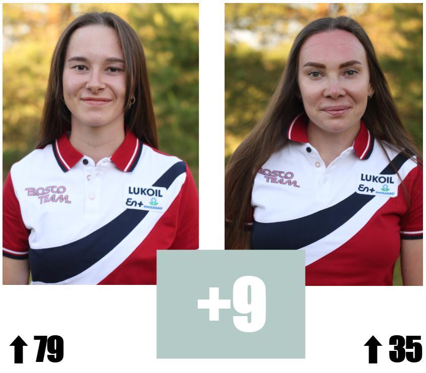 Конечно, лидерство здесь Даша захватила на фоне болезни Смирновой и пропуска спринта. Получается у Непряевой +79 очков, а у Смирновой +35, а в общем зачёте +9 у Непряевой. Да, борьба на финале Кубка будет огненной. Думаю, всё решится на гонке в гору!