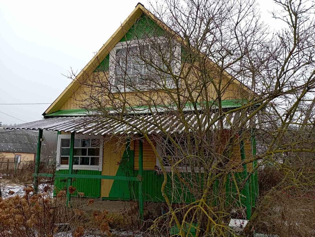 Он деревянный, с мансардой, верандой и погребом. Снаружи обшит вагонкой, на крыше шифер, общая площадь 34,4 м2.