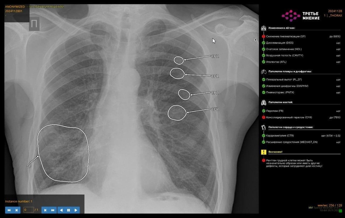 Лучевые диагносты 50 больниц используют искусственный интеллект для интерпретации исследований и получения второго мнения в Башкирии. Как сообщил в своих соцсетях министр здравоохранения РБ Айрат Рахматуллин, развитие комплексных сервисов — одно из ключевых направлений работы ведомства при применении технологий искусственного интеллекта. Например, на КТ органов грудной клетки комплексный сервис способен определять до 14 видов патологий. В будущем планируется добавление сервисов по аналитике бронхоэктазов, фиброзов и эмфиземы легких. Новые направления, которые научились выявлять ИИ-сервисы — это пневмоторакс, изменения подмышечных лимфоузлов на КТ органов грудной клетки, переломы ребер, инфильтрация легочной ткани (пневмония), плеврит (скопление жидкости в плевральной полости), объемное образование надпочечников, костная патология позвоночника. «ИИ-сервисы уже компетентны в анализе изменения лимфоузлов: сервис подсвечивает врачам патологическую зону, которую в дальнейшем врач-клиницист