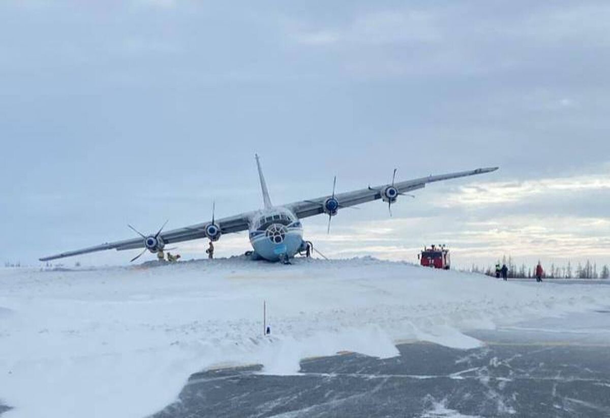 На Ямале у самолета Ан-12 авиакомпании «Атран» при посадке на аэродром Новый Уренгой надломилась левая стойка шасси. В результате воздушное судно выкатилось на боковую полосу.