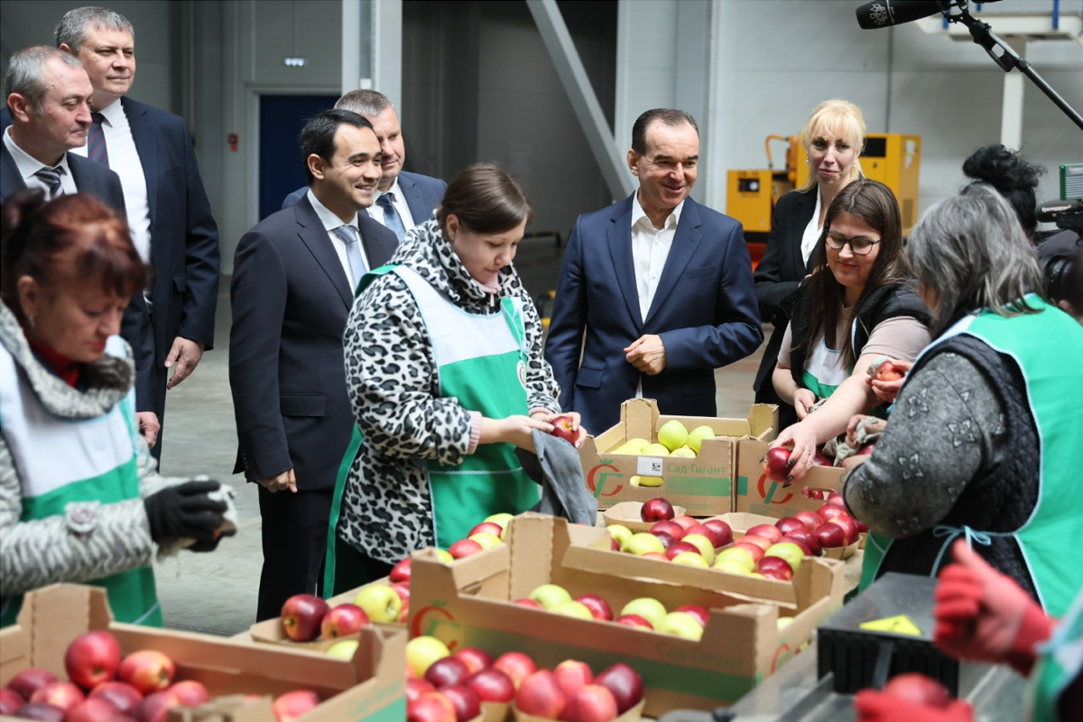 Губернатор Краснодарского края Вениамин Кондратьев посетил одно из крупнейших производств яблок в России — «Сад-Гигант» в Славянском районе.