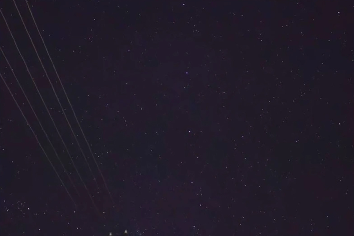 Полякову удалось заснять редкое явление — групповой полет спутников Starlink, еще не занявших свои окончательные орбитальные позиции.