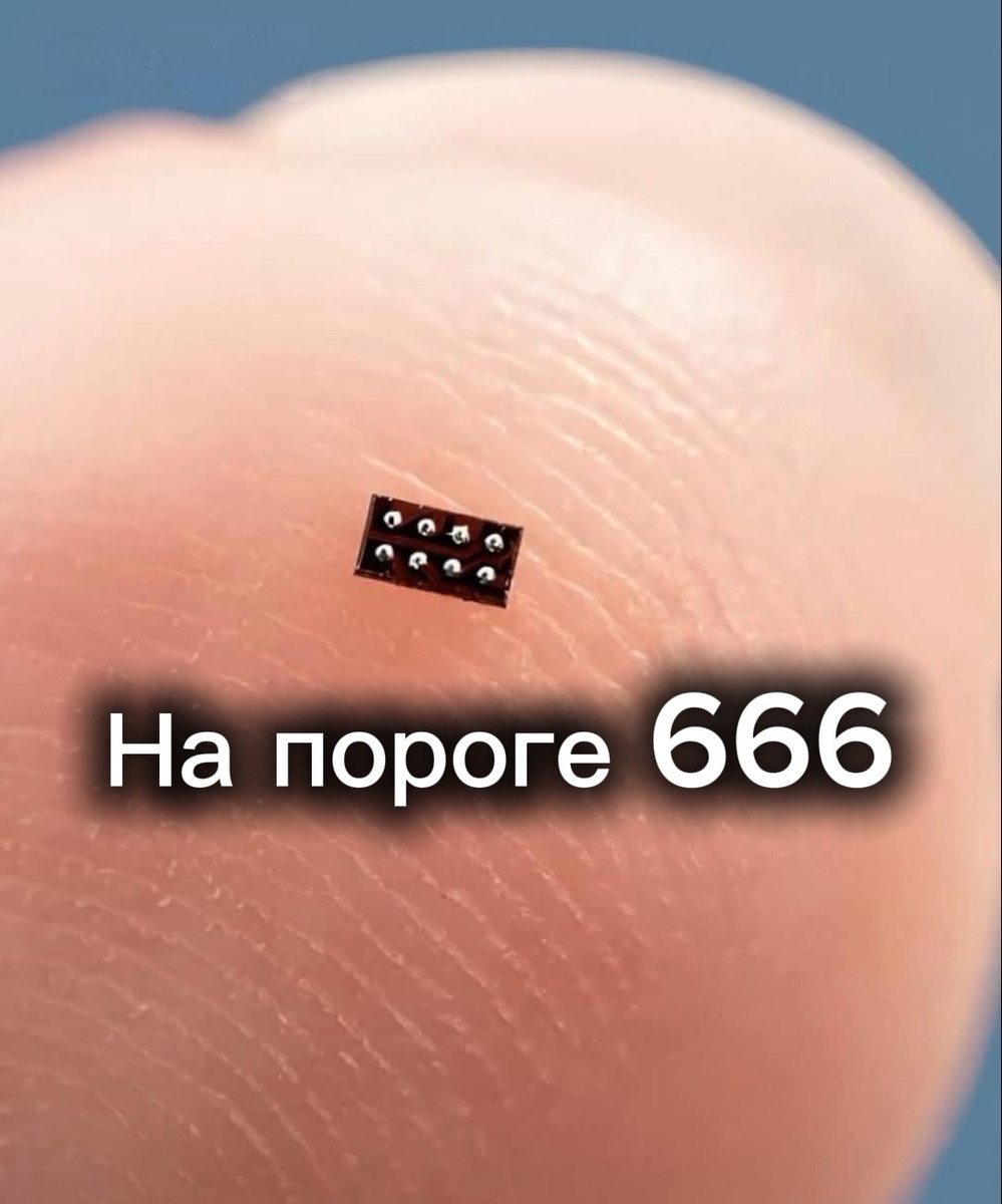 То, что вы видите на фотографии, — самый маленький в мире процессор, который помещается на кончике пальца. Многие скажут: «Здорово, прогресс стремительно движется вперёд». Но мало кто осознаёт, что это — зловещий сигнал приближения человечества к мировой диктатуре. Библия говорит о том, что скоро явится Антихрист, и именно для его прихода развиваются подобные технологии. Вот что написано в последней главе Библии, в Откровении: "И он сделает то, что всем, малым и великим, богатым и нищим, свободным и рабам, будет положено начертание на правую руку их или на чело их, и что никому нельзя будет ни покупать, ни продавать, кроме того, кто имеет это начертание, или имя зверя, или число имени его. Здесь мудрость. Кто имеет ум, тот сочти число зверя, ибо это число человеческое; число его — шестьсот шестьдесят шесть". Что это за начертание, Библия не уточняет. Это может быть штрих-код или вот этот чип, который будут вживлять под кожу правой руки или под кожу лба, между бровями. Посмотрите, как