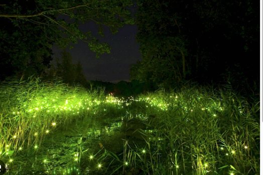 Кто из вас, уважаемые читатели, видел в детстве светлячков? Вспомните, сколько радости и удивления вам принесла эта встреча. В этом коротеньком рассказе я хочу рассказать, как наша дочка впервые их увидала в свои 5 лет. Задержались мы как то летом на даче дольше обычного и не заметили, что начинаются сумерки. Но домой решили пойти через лес пешком, в надежде засветло пройти его. Только зайдя в лес, поняли, что в лесу намного темнее, чем на открытой местности. Шли мы по узкой тропинке, вдоль стены завода, напряженно глядя под ноги. Стена была нам ориентиром. Пройдя больше половины пути, мы поняли, что засветло выйти из леса не получится и прибавили шаг. Шли и думали, как поскорее выбраться из этой темноты. Мы шли по тропинке и старались не обращать внимания на то, что происходило вокруг нас. А вокруг уже легла ночь. Было немного жутковато в ночном лесу. Скрип гнущихся деревьев и крики ночных птиц, ко всему прочему, добавляли нервного напряжения. Было немного не по себе. Временами где