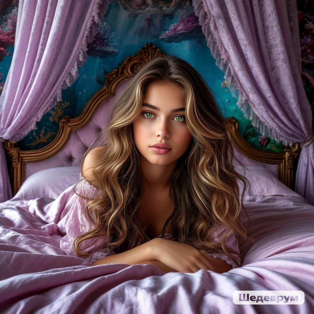 Сирена очнулась лежа на большой кровати под роскошным сиреневым балдахином. Она крепко зажмурилась этим, пытаясь, прогнать видение представшее перед ее глазами. Ведь комната казалась очень знакомой словно она уже как-то раз бывала здесь. "Нет, этого просто не может быть". - Сказала себе девушка приподнимаясь на кровати. Все вокруг тут же закружилось и Сирена с тихим стоном вновь упала навзничь. Она находилась в подводном царстве в одной из комнат принадлежавших Тритону Великолепному в которых часто убиралась так как прислуживала ему.