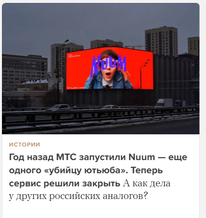 Подобная статистика выглядит совсем скромно, учитывая, что российские власти с августа 2024 года замедляют ютьюб, а тикток с начала войны работает в стране с ограничениями. Несмотря на фактическое отсутствие западных конкурентов, МТС так и не удалось привлечь на свой видеохостинг ни блогеров, ни зрителей. И по мнению экспертов, проблема не только в Nuum.