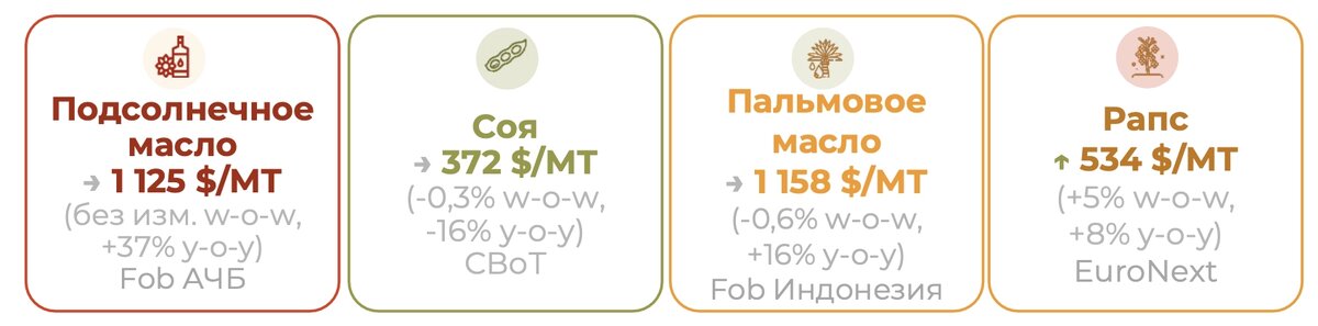 Мировые новости Динамика цен на растительные масла на прошлой неделе оставалась неоднородной, но в целом соответствовала тенденциям предыдущего периода. Украина в феврале увеличила экспорт подсолнечного масла в ЕС, сократив отгрузки по другим ключевым направлениям. Турция возобновила закупки подсолнечного масла 20 марта ТМО провел тендер на закупку 18 тыс. тонн нерафинированного подсолнечного масла (CFR) впервые за два года. Отгрузка запланирована на 2–21 апреля. Турция добирает остатки по импортной квоте, действующей до конца апреля. В среднесрочной перспективе рост экспорта подсолнечного масла из Причерноморья маловероятен из-за усиления конкуренции, в том числе со стороны Аргентины и альтернативных масел. Перспективы роста экспорта подсолнечного масла с Черного моря весьма ограничены. Турция закупает последние партии в рамках своей квоты, которая истекает в конце апреля. При этом конкуренция на ключевых рынках, включая Индию, усиливается из-за поставщиков из Аргентины и более выгодн