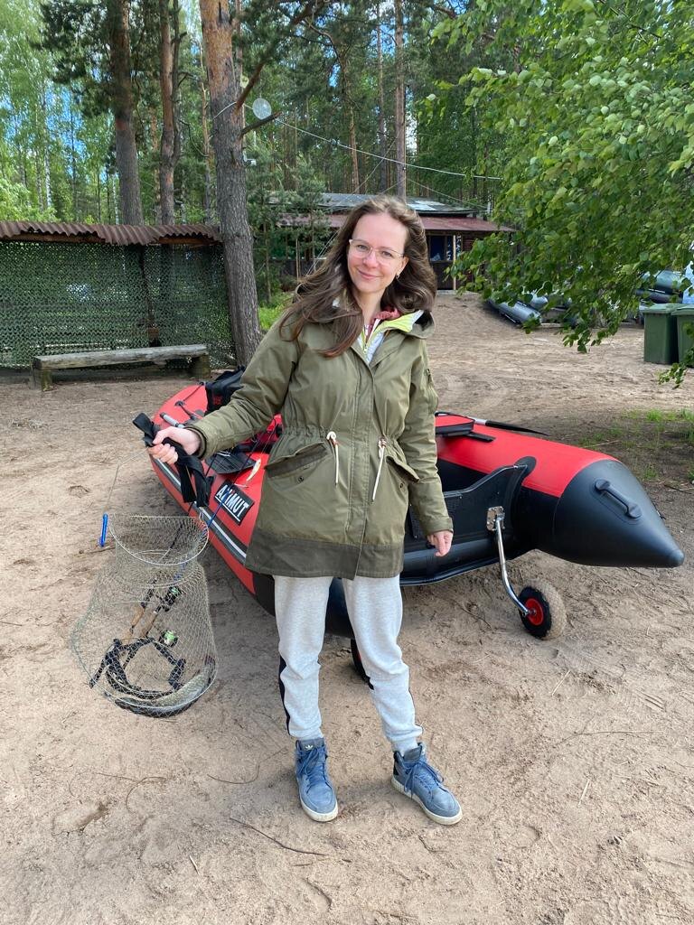 Лето 2022 года выдалось насыщенным: мой младший сын принял решение уехать жить к отцу в другой город, у старшего в активной фазе был переходный возраст, но к тому моменту они оба достаточно подросли, чтобы я смогла отважиться с ними поехать на три дня на Вуоксу на рыбалку. Мне так хотелось перед отъездом сына максимально насыщенно провести с ним время, что я распланировала все выходные активным отдыхом, и в середине июня мы поехали с друзьями в приключения)) Мы выбрали рыбачью базу Зеленый мыс на Вуоксе, до нее от Питера чуть более двух часов на машине, из них 30-40 минут по грунтовой дороге. В целом проедет любая машина, но мы были на кроссовере. На базе платная стоянка, платный спуск своей лодки на воду, можно арендовать домик (условия в домиках спартанские), есть туалет, душ, беседка, родник с питьевой водой. Вообще я так скажу, это мужицкий рай 🤣😍 Пока мой приятель с детьми спускали лодку и грузили на нее весь наш скарб, крепили к ней «тузика» с палатками, спальниками, едой, вод
