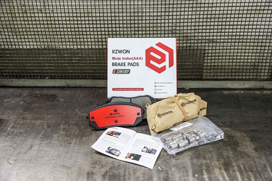 Диагностика автомобиля не выявила никаких замечаний, кроме рекомендации по замене передних тормозных колодок – они уже порядком износились, особенно внутренние накладки. С них и решили начать. На складе сервиса нашлись подходящие передние колодки – Caready C501012131, так что владельцу Seltos не пришлось ни ждать их, ни куда-то за ними ехать. Замена тоже не составляет труда – в этом плане у Киа всё совершенно стандартно.