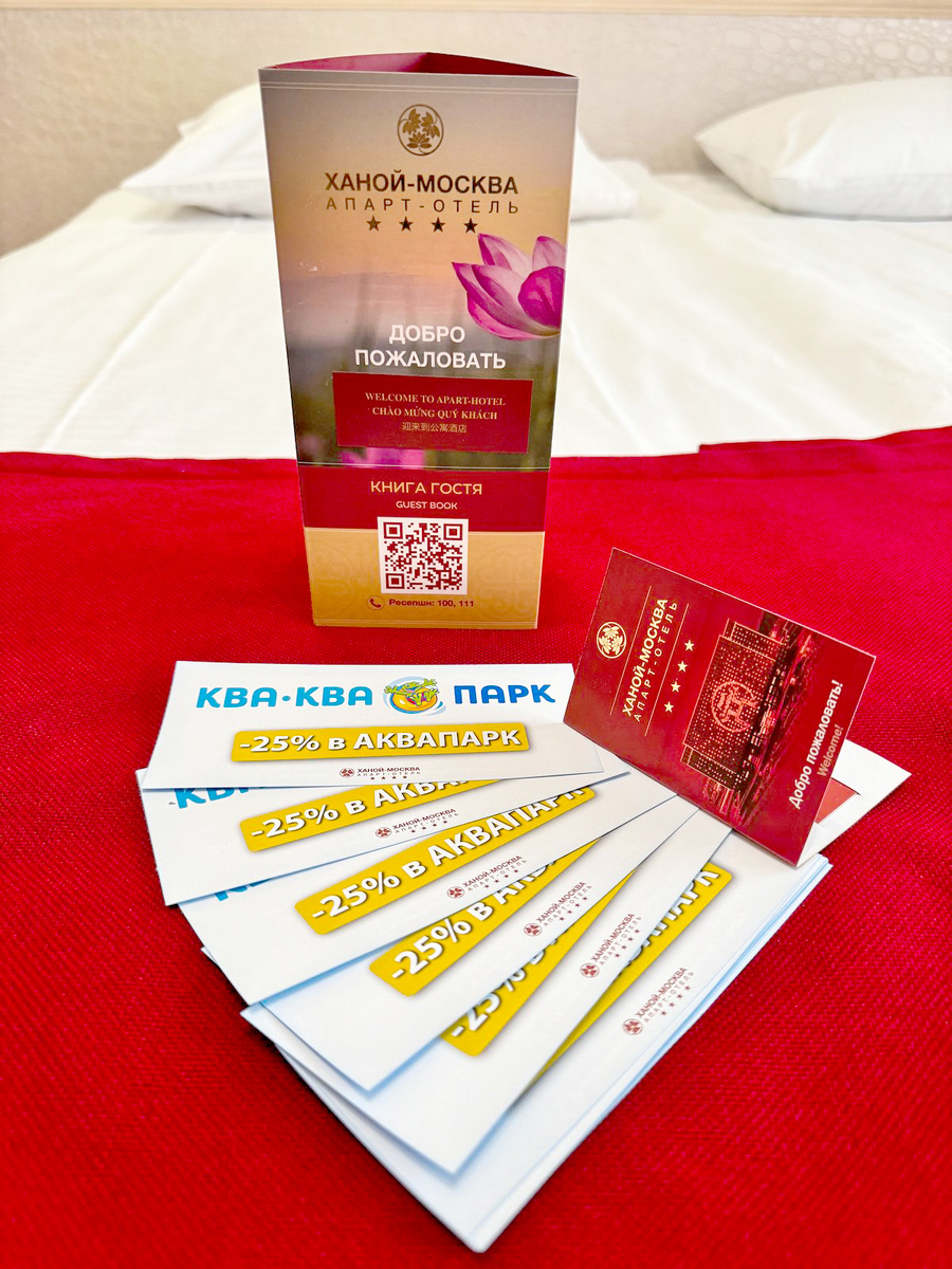 Окунись в аква отпуск с «Ханой-Москва»! Только сейчас каждый гость апарт-отеля получает купон на скидку -25% в «Ква-Ква парк» Cовременный аквапарк находится всего в 5 минутах езды от «Ханой-Москва»!
