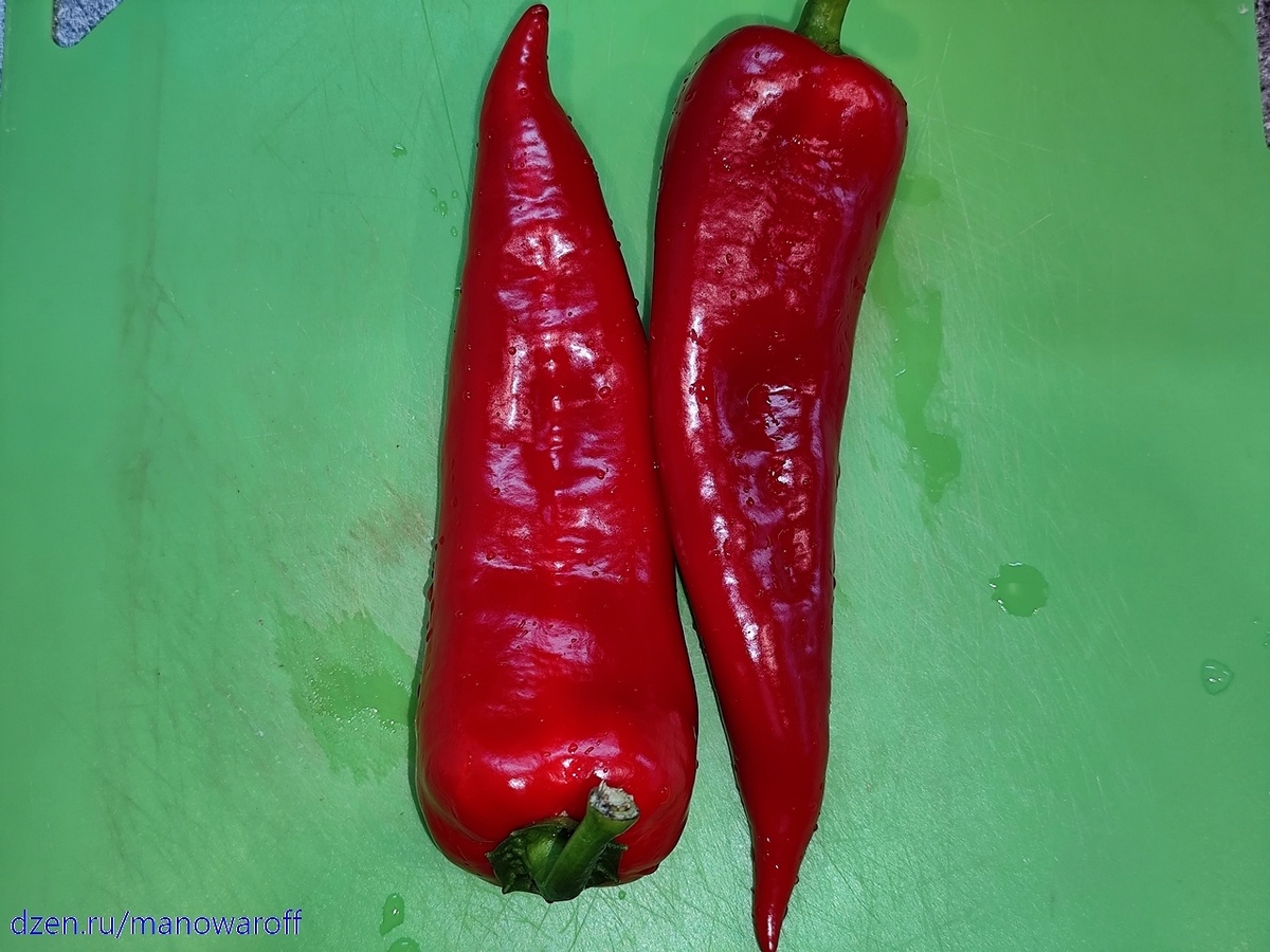*Перец чили в данном случае - это не Каролина Рипер, не Хабанеро и даже не кайенский. В магазинах и на рынках продается такой здоровый слабоострый (3000-5000 SHU) безымянный (хотя иногда его называют кавказским) перец.