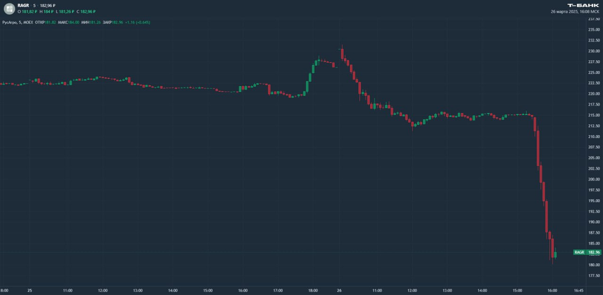Новость о задержании Мошковича обрушилась на рынок, как ураган. Акции «Русагро» ($RAGR) полетели вниз, потеряв 19,5% буквально на глазах. Инвесторы, что ещё вчера считали компанию надёжным активом, теперь в панике. Причина краха ясна: задержание основателя — это не просто личная драма, а удар по всей системе, что держалась на его имени. А тут ещё и слухи, что акционеры не одобрили перерегистрацию компании с Кипра в Россию — шаг, который мог бы укрепить позиции «Русагро» на родной земле.