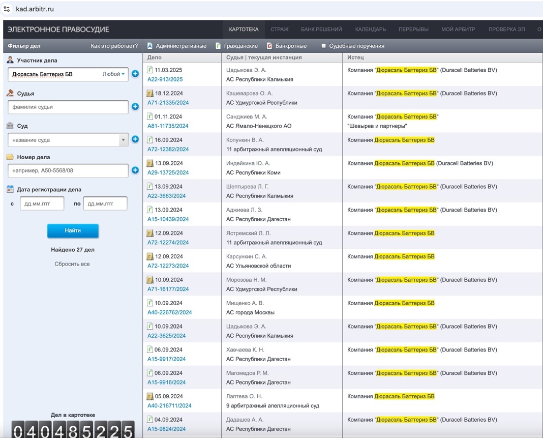 По состоянию на март 2025 года согласно картотеки арбитражных дел (kad.arbitr.ru/), подано более 25 дел.