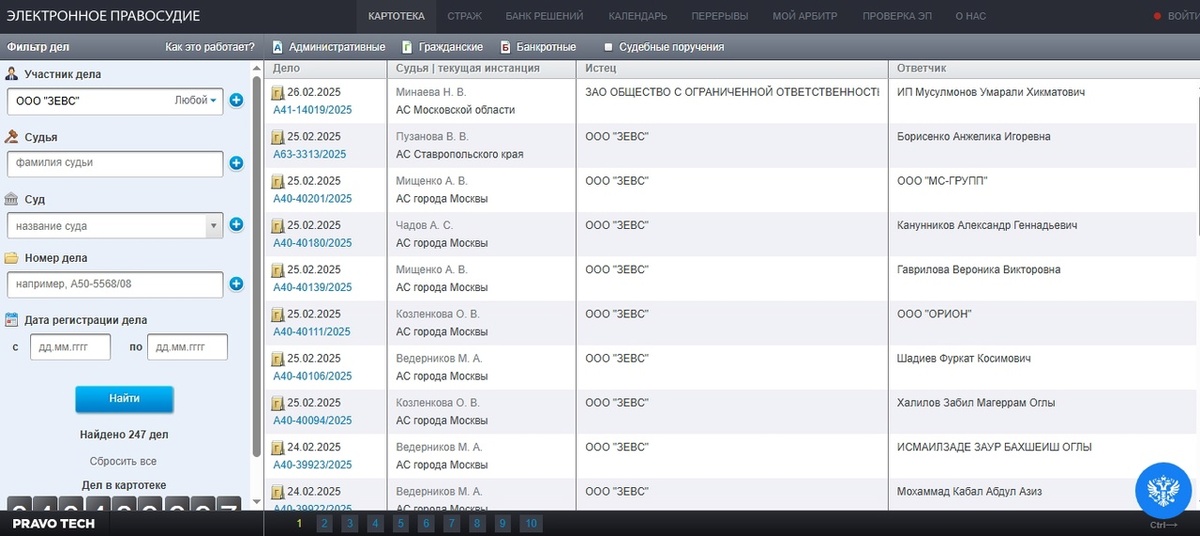 По состоянию на март 2025 года согласно картотеки арбитражных дел (kad.arbitr.ru/), подано 247 дел.