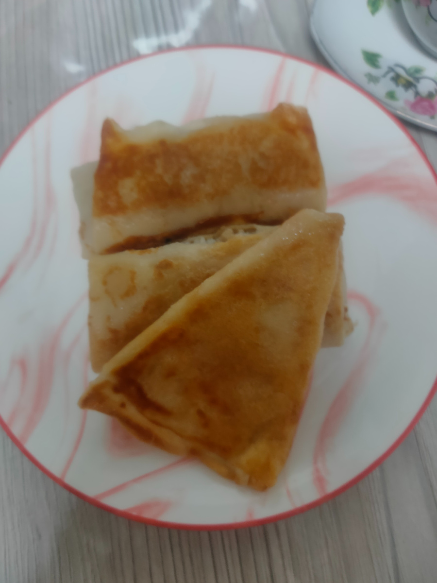 На завтрак у нас сегодня фаршированные блины с рисом и свиным фаршем, обжаренные на сливочном масле на сковороде, я всегда их обжариваю, нам так вкуснее. С такой начинкой делала впервые, очень вкусно получилось, не сухие, все в меру + обычный блин, который я ела с плавленым сыром,