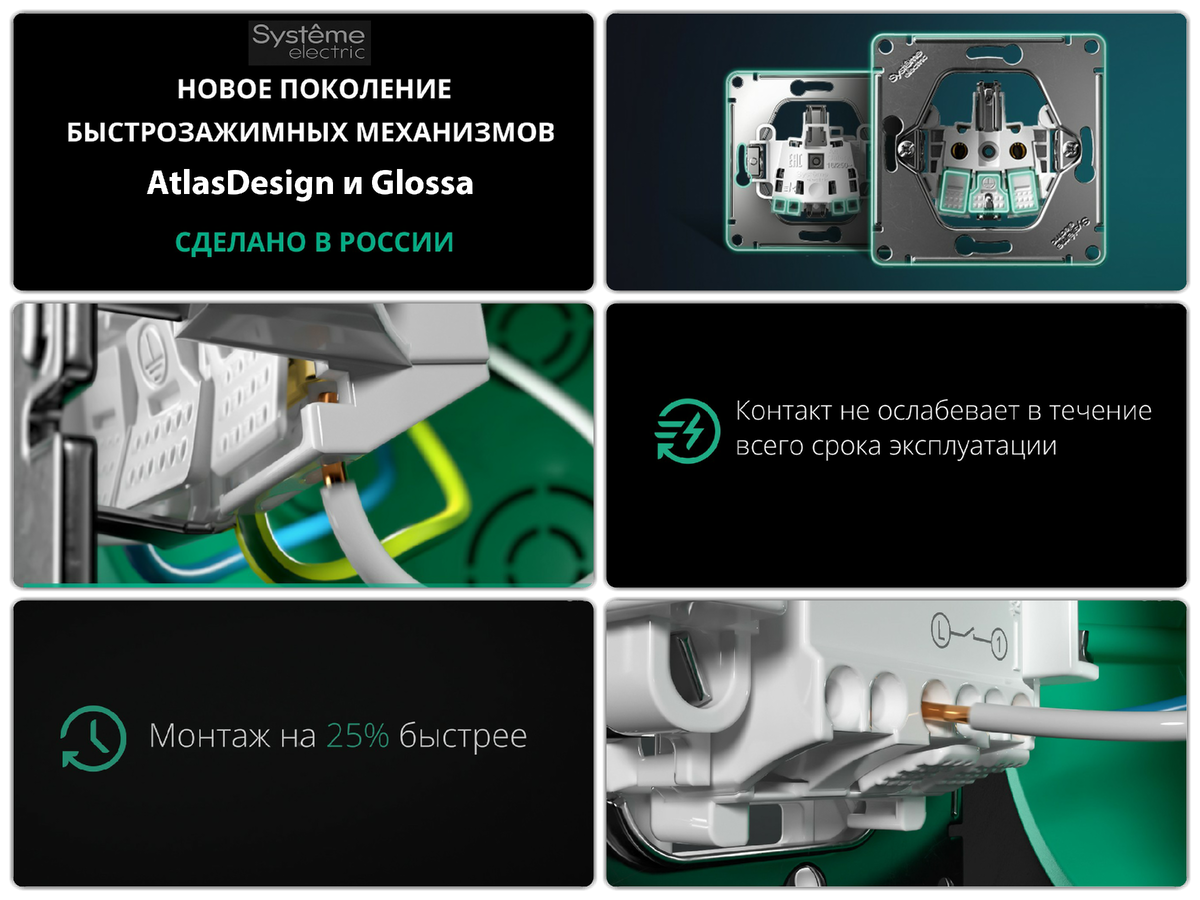 17.03.2025 - старт продаж механизмов с быстрозажимными клеммами розеток и выключателей AtlasDesign и Glossa компании «Систэ Электрик».
