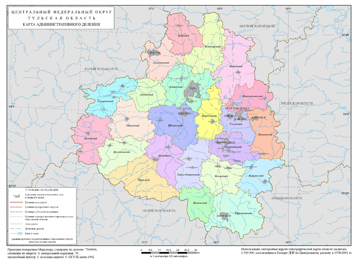 В настоящее время — в Тульской области насчитывается 103 муниципальных образования — включающих 19 районов, шесть городских округов и один муниципальный округ.