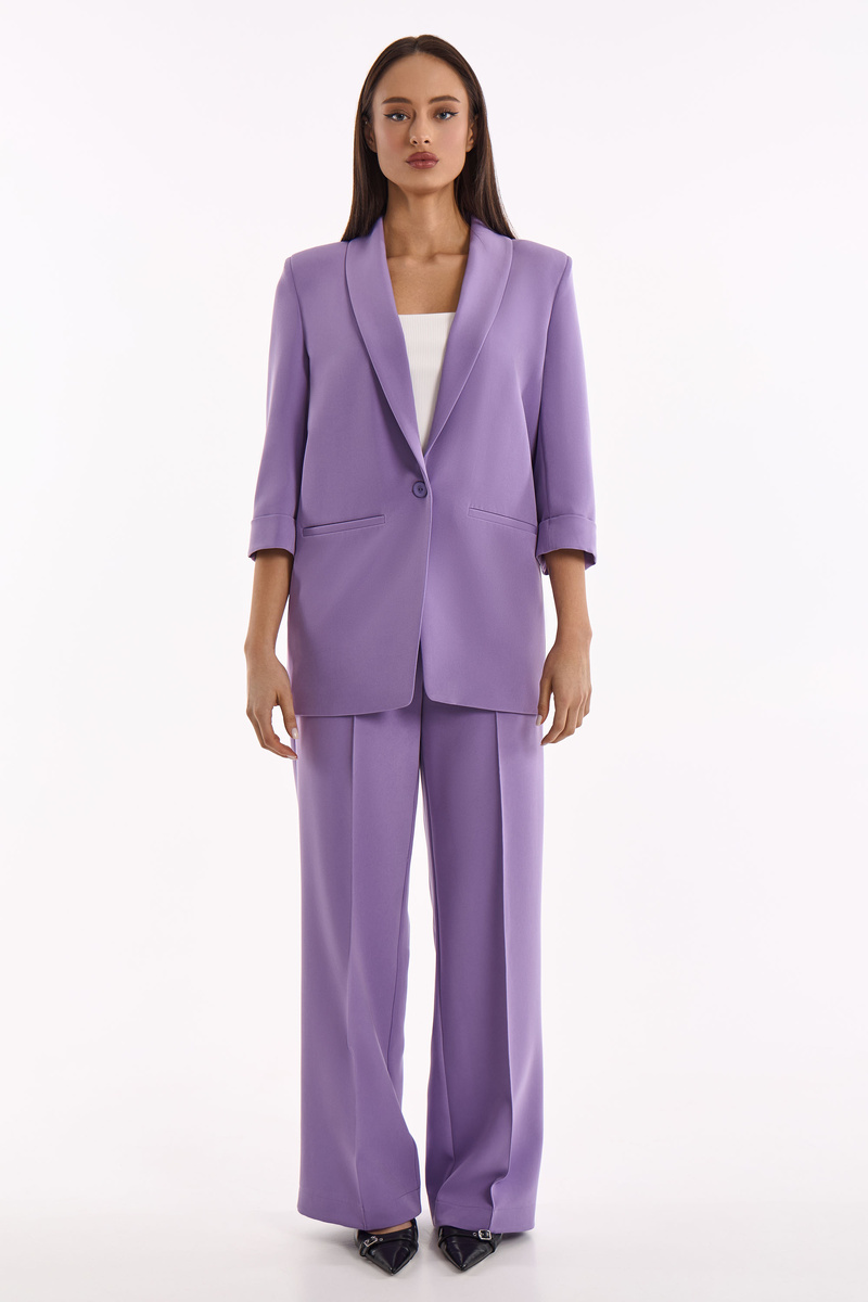 Элегантный пиджак с короткими рукавами светло-фиолетового цвета. Пиджак выполнен в классическом стиле с лацканами и застежкой на пуговицу. Лацканы пиджака аккуратные и тонкие, подчеркивающие линию шеи и делая силуэт более изысканным. Пиджак легко комбинируется с различными предметами одежды и станет отличным выбором для тех, кто ценит сочетание элегантности и комфорта. wa.me/+79891215656 t.me/+79891215656