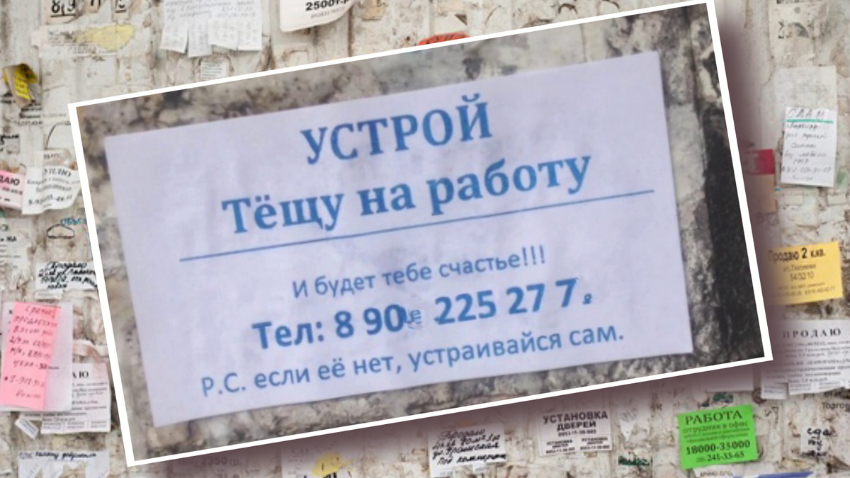 Кто сказал, что работу ищут только в интернете? Оказывается, на обычных столбах тоже можно наткнуться на заманчивые предложения. Некоторые работодатели, верные традициям, размещают вакансии прямо на улицах. И, к удивлению, это приносит свои плоды. В этой подборке – 15 необычных и креативных уличных объявлений о работе, которые вызовут улыбку на вашем лице. Способ наладить отношения, а может, просто избавиться от назойливого родственника. Видимо, автор объявления не знаком с правилами игры "Тёща против Зятя". По правилам, тёща обязана обеспечить зятя работой, а зять - молчать и не перечить. Иначе - Game Over. Обращаться на улицу кой-кого, а платить будут видимо кое-как и кое-чем. А обязанности - делать кое-что. Открыт кастинг на роль "помощника" у предпринимательницы. Главное требование: не вилять хвостом. Если у вас есть справка об отсутствии "собачьих" привычек - вам сюда. Забудьте про резюме и собеседования. Мы нанимаем по гороскопу. Главное - не забудьте взять на собеседование