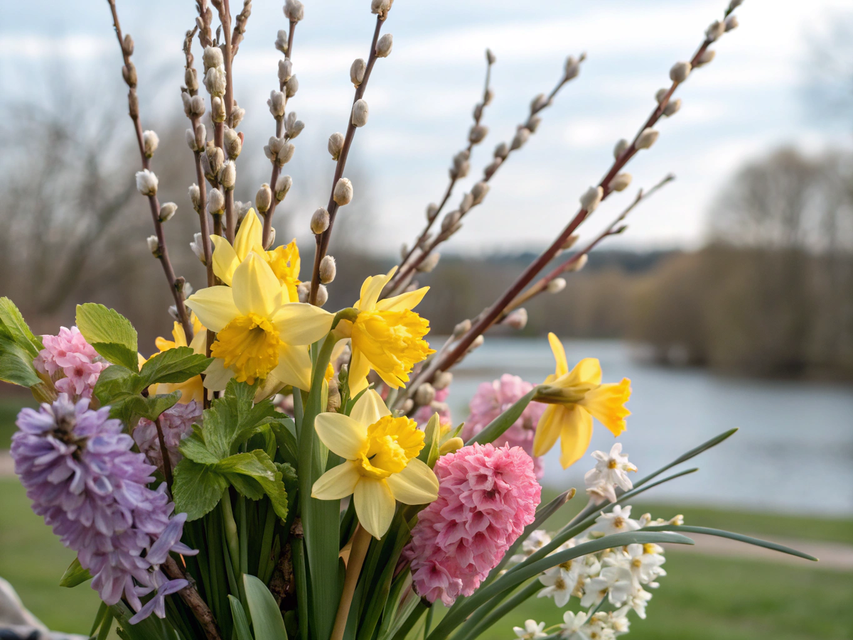 Сочетания цветов в сезонных букетах весны чаще всего включают мягкие тона, но можно добавить акценты — например, сочетание желтых нарциссов с сиреневыми ирисами. Подробнее про создание весенних букетов писали в статье «Весенние букеты: как создать яркие и теплые композиции».
