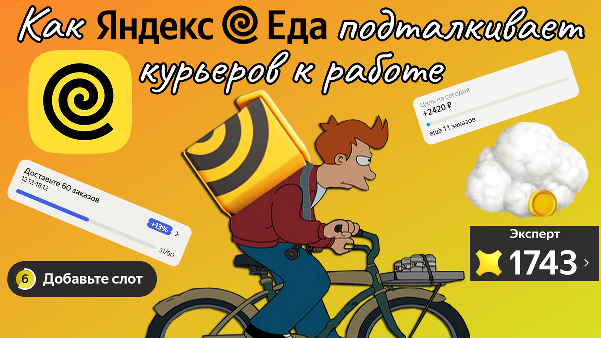 Всем привет! 👋😊 К написанию данной статьи меня побудило то, что я уже несколько недель не выходил подрабатывать в Яндекс Еду в связи с временно пропавшим интересом к этому делу 🥱 На этот момент повлияло и то, что в последнее время я начал отдавать предпочтение доставке Wildberries, про которую вы можете почитать в другой моей статье. В рамках же этой статьи я рассмотрю большую часть приёмов, которые использует сервис Яндекс Еда для поддержания интереса курьеров к работе 🔎 Если вы сами являетесь курьером Яндекс Еды, то не думаю, что вы узнаете для себя что-то новое. Единственное, что вы сможете узнать – это моё субъективное мнение касательно системы мотивации. Тем не менее, думаю, что статья может показаться интересной тем, кто ещё не работал в Яндекс Еде и только планирует попробовать себя в этом деле 🆕 По крайней мере, будет общее представление о том, чего можно ожидать. Статья будет длинной, поэтому пользуйтесь оглавлением для перехода на нужные моменты статьи, если полностью читать её не планируете 📑 Меня зовут Алексей. Не забудьте заварить чай или кофе ☕, а мы начинаем. Приятного прочтения! 📖