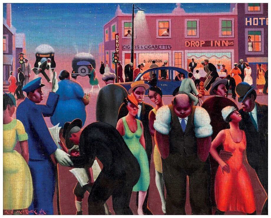 Арчибальд Джон Мотли - американский художник, рисовавший ночную жизнь Гарлема 20-30х годов и являвшийся одним из участником "Гарлемского ренессанса". Это было явление возрождения - интеллектуального и культурного - черной музыки, танцев, искусства, моды, литературы, театра, происходившее в Гарлеме, Манхэттене и Нью-Йорке в 1920-1930х годах (но не только, отголоски полыхали и среди франкоговорящих афроамериканцев в Париже). По другому это называли "Новым негритянским движением". Художники своими работами пытались донести и запечатлеть новое понимание о чернокожих. Эта же идея легла в основу творчества Мотли - идея расового уважения. В картинах Мотли черный цвет многомерен, разнообразен, он по-своему выражал многранность и глубину черной культуры, ее историю и настоящее. При этом сам художник имел смешанное происхождение и находился на краю своей же культуры, пытаясь понять свою принадлежность. Они не все одного цвета, они не все чёрные, они не все, как говорили много лет назад, ярко-жёл