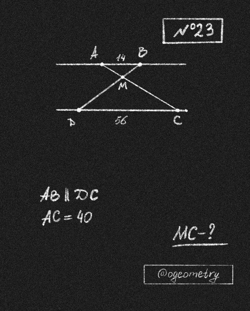 Супер-простые 2 балла из второй части, но надо знать признаки подобия треугольников и свойства углов при параллельных прямых Задача устная, достаточно пары секунд на ответ. У Вас получилось? Ответ пишите в комментарии и не забывайте подписаться на мой телеграмм-канал, там больше задач на чертежах! ❔Найдите отрезок MC