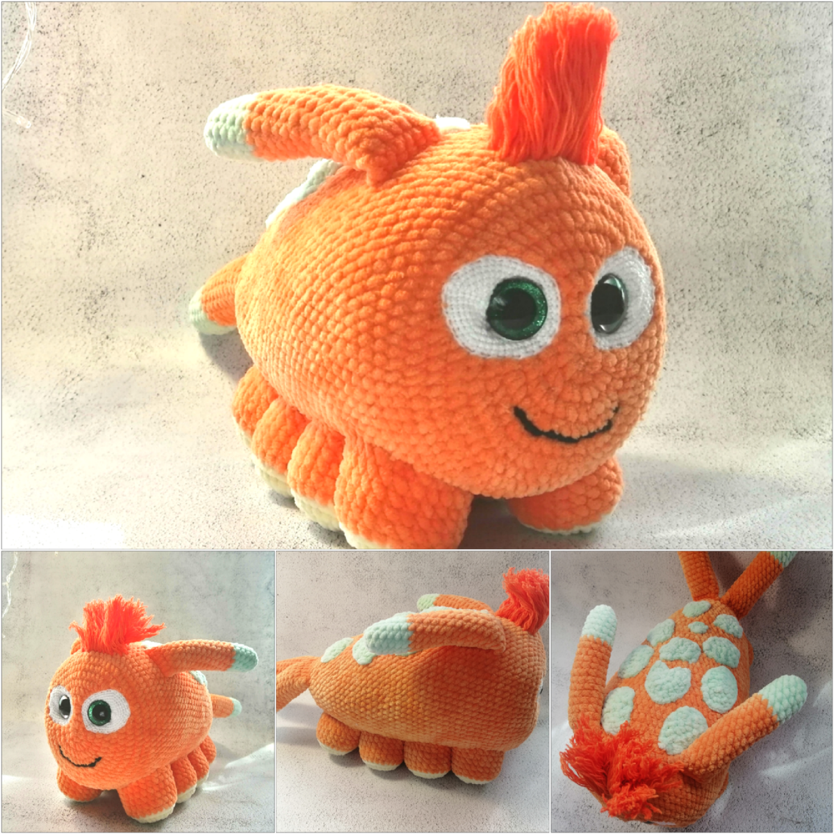 Размер игрушки вы можете регулировать самостоятельно, убрав лишние ряды с прибавками и провязывая меньше рядов с одинаковым количеством петель.
