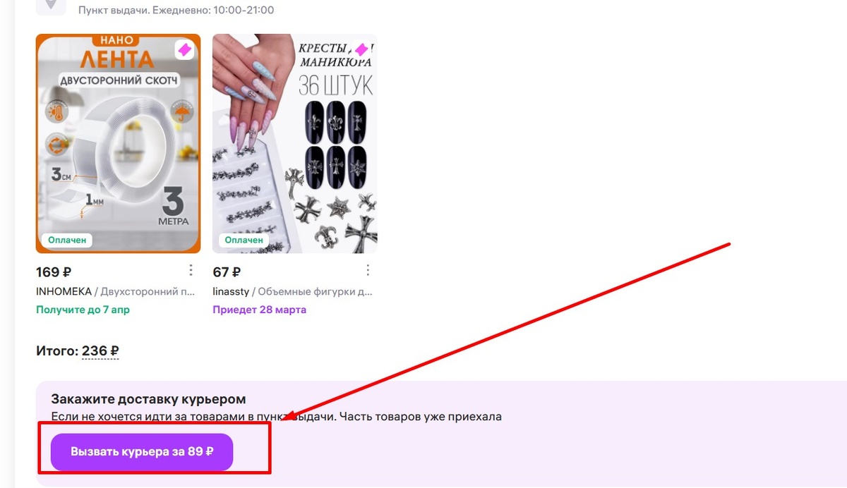 И есть множество служб, где требуется доставка. Например, в ближайший к вам пункт Озон или ВБ привезли заказы, а люди не хотят идти и их забирать, или времени у них нет, и заказывают курьера. Вот так это может выглядеть: