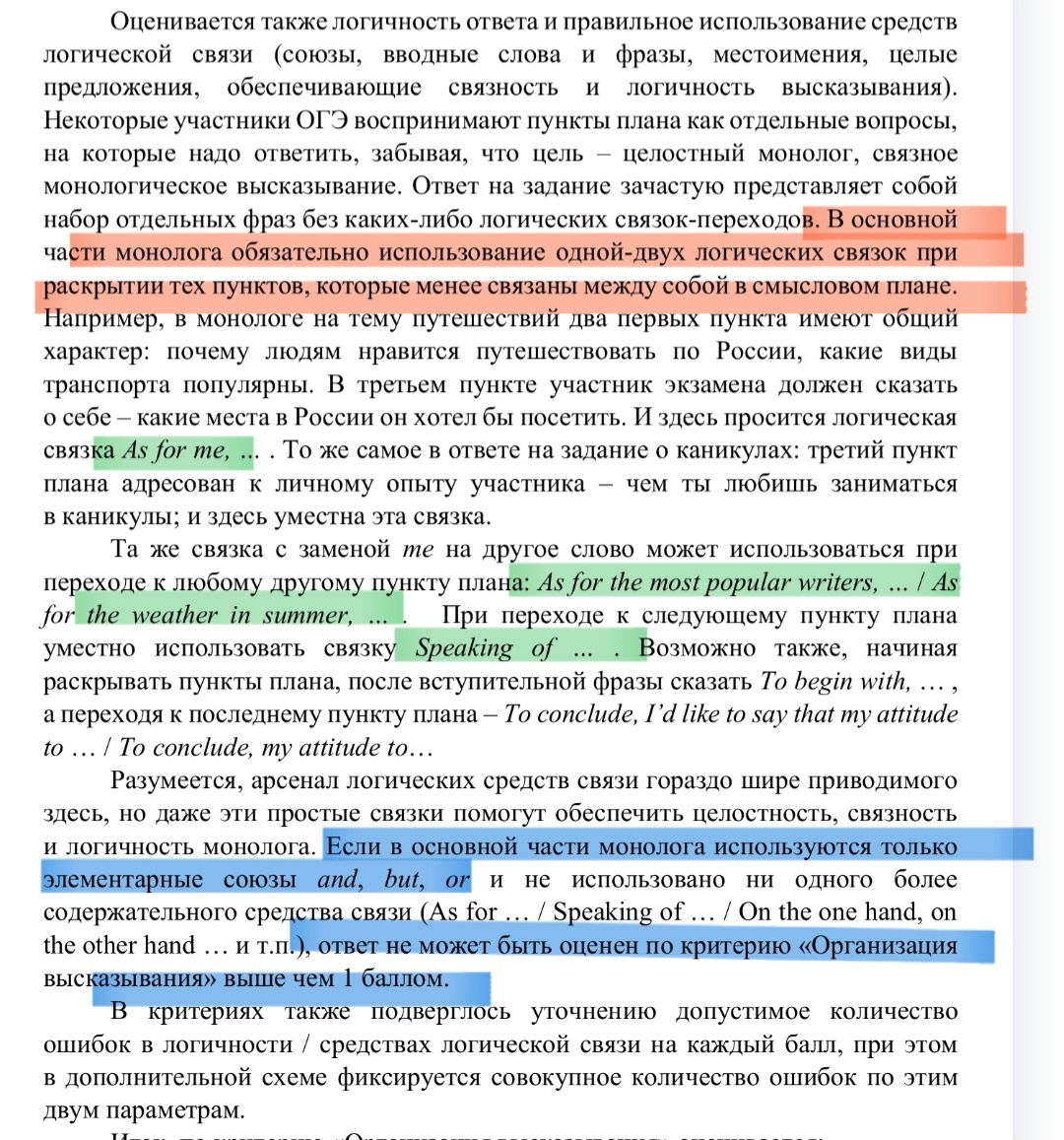 При выполнении задания 3 Устной части огэ по английскому языку (Монолог) всегда уделялось внимание тому, чтобы ответ учащегося был связный и логичный. Выпускник 9 класса не просто отвечает на отдельные вопросы плана или выученный топик, а составляет целостный монолог, связное монологическое высказывание.