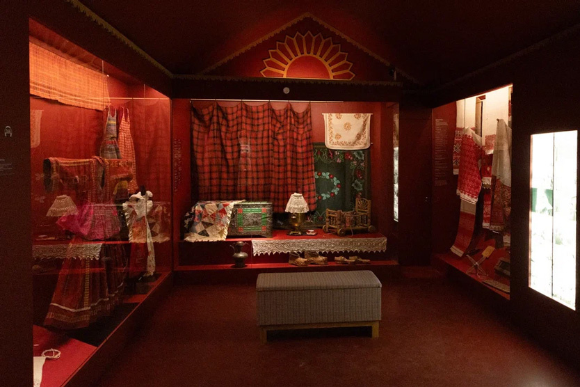 Отдельная часть выставки посвящена ткацким изделиям и предметам быта татарской деревни. В этом зале представлены традиционные полотенца, обладающие не только практическим значением, но и символическим смыслом за счет преемственности орнаментов (в свое время люди думали, что определенные узоры отводят от дома беды и привечают счастье и изобилие). Такие полотенца — неотъемлемая часть татарских праздников и обрядов. Также в зале можно увидеть предметы, с помощью которых обрабатывались ткани, наносились орнаменты.