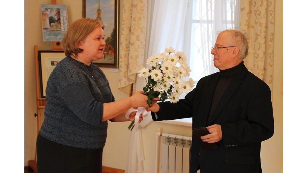 Руководитель музея Елена Левина представила присутствующим Михаила Решетнева – заслуженного художника РФ, члена Союза художников России, участника всероссийских и международных художественных выставок, лауреата различных премий. Его работы хранятся в фондах Министерства культуры России.