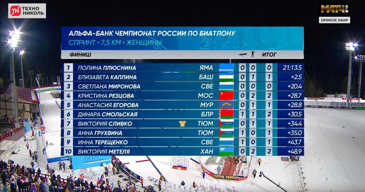 Миронова, конечно, уникум. Сбавила в скорости, прибавила в стрельбе и нашла какой-то баланс, достаточный для российского биатлона. Нет, в мире так выступать, конечно, нельзя, будешь пробивать дно за пределами 10-ки или даже 20-ки. Но на наших стартах такого вполне достаточно для подиума. Очень жаль, что не удалось поймать стрельбу на более высоких скоростях. Но наверно, Светлана так уже и не побежит. Ушло то время. Но в любом случае мое почтение за то, что нашла в себе силы вернуться, причем очень достойно. Теперь же есть бронза ЧР, а если завтра еще будет медаль, то еще и в сборную отберется. Вот уж, по-настоящему невероятные перипетии одной спортивной карьеры.