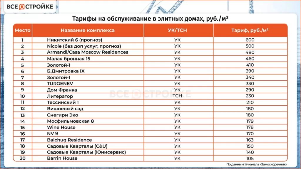 🔸 ЖК «Лаврушинский» от Sminex — 800 рублей за «квадрат». Получается, что за квартиру площадью 100 кв.м. нужно будет платить управляющей компании по 80 тыс. рублей.