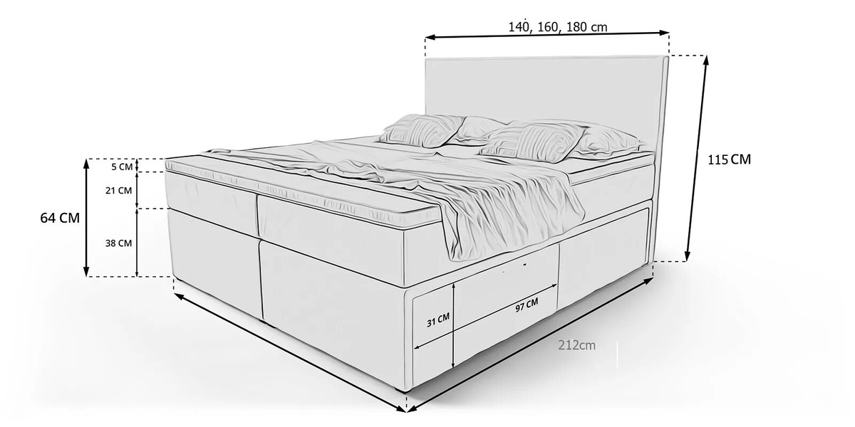 - США — 70–100 см. Высокие кровати, часто с несколькими матрасами. Принято у пожилых и людей высокого роста.